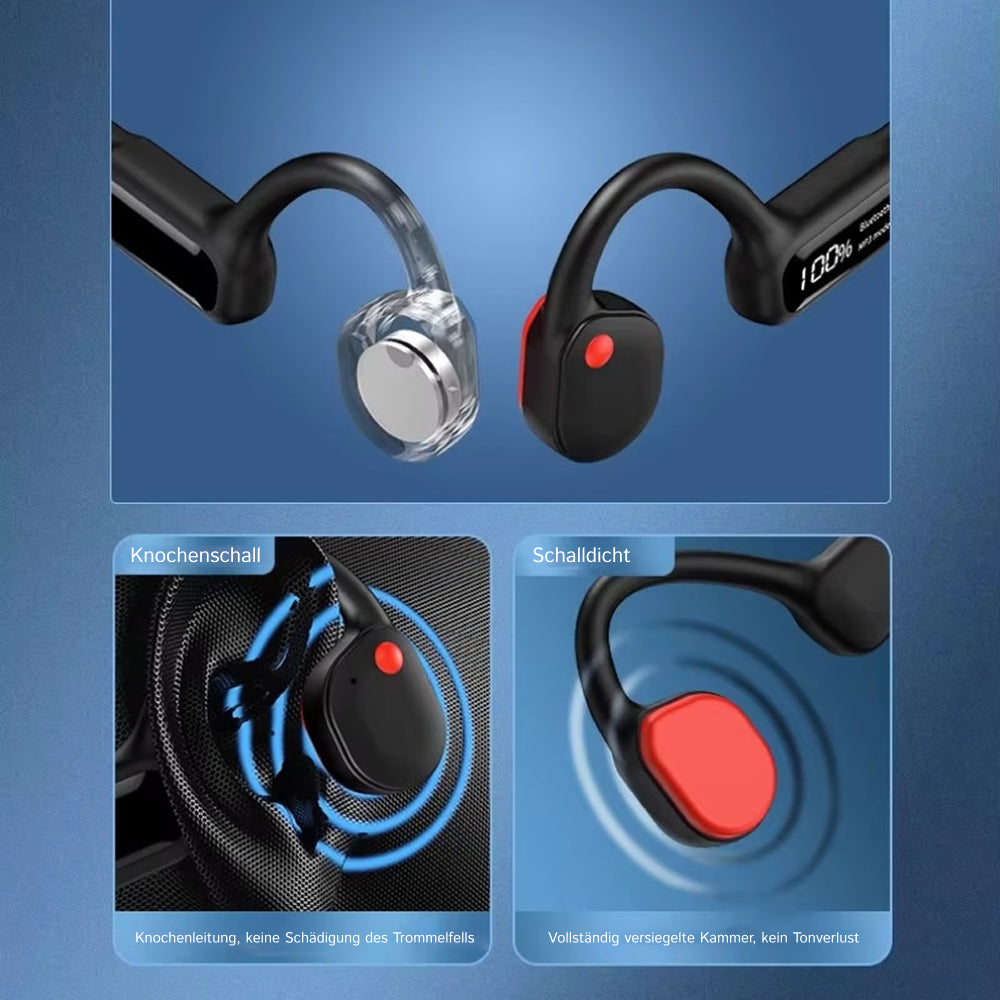 Bone conduction transmits sound vibrations directly through your cheekbones to your inner ear, bypassing the eardrum. This allows you to hear music clearly underwater while still maintaining awareness of your surroundings.
